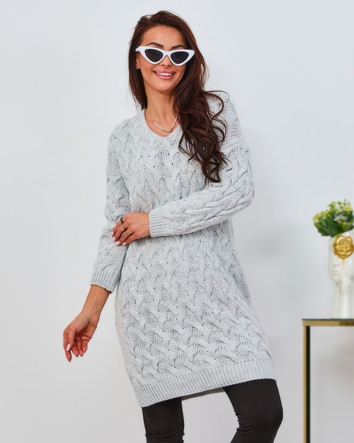 Royalfashion Hellgraues Damen-Pulloverkleid