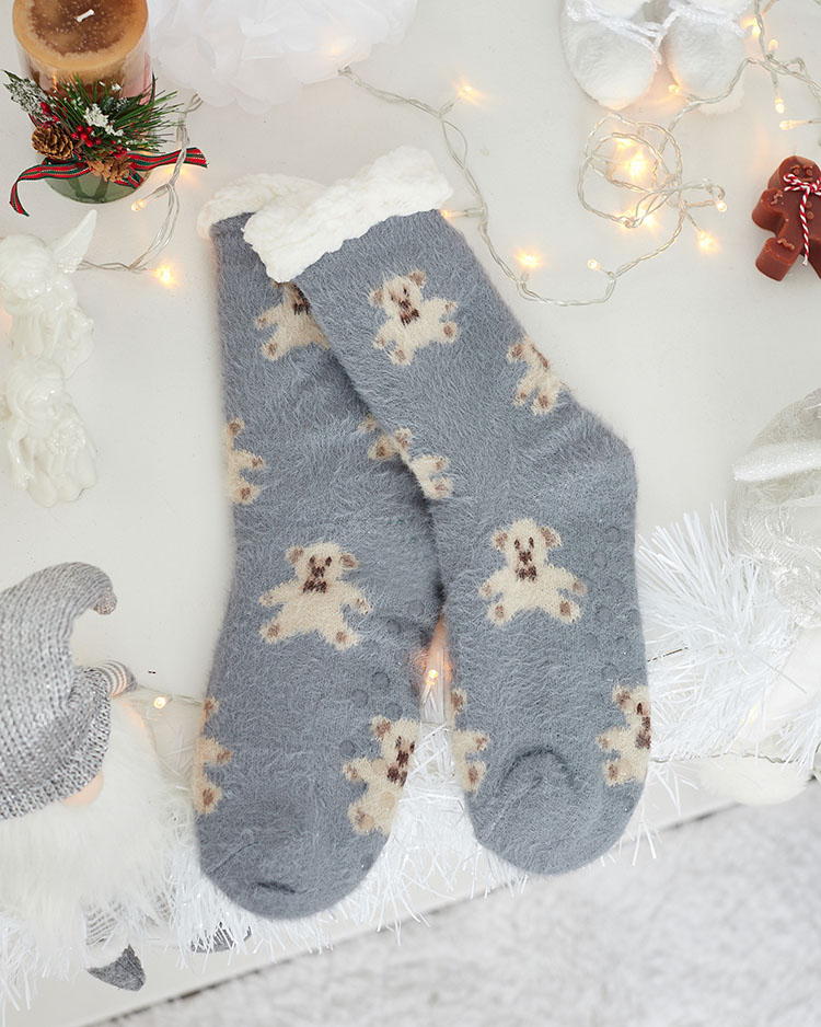 - Schöne dicke Damensocken mit einem Muster aus Teddybären. Innen mit weißem, warmem Schafsfell isoliert. Die Socken sind ideal für kühlere Abende!
