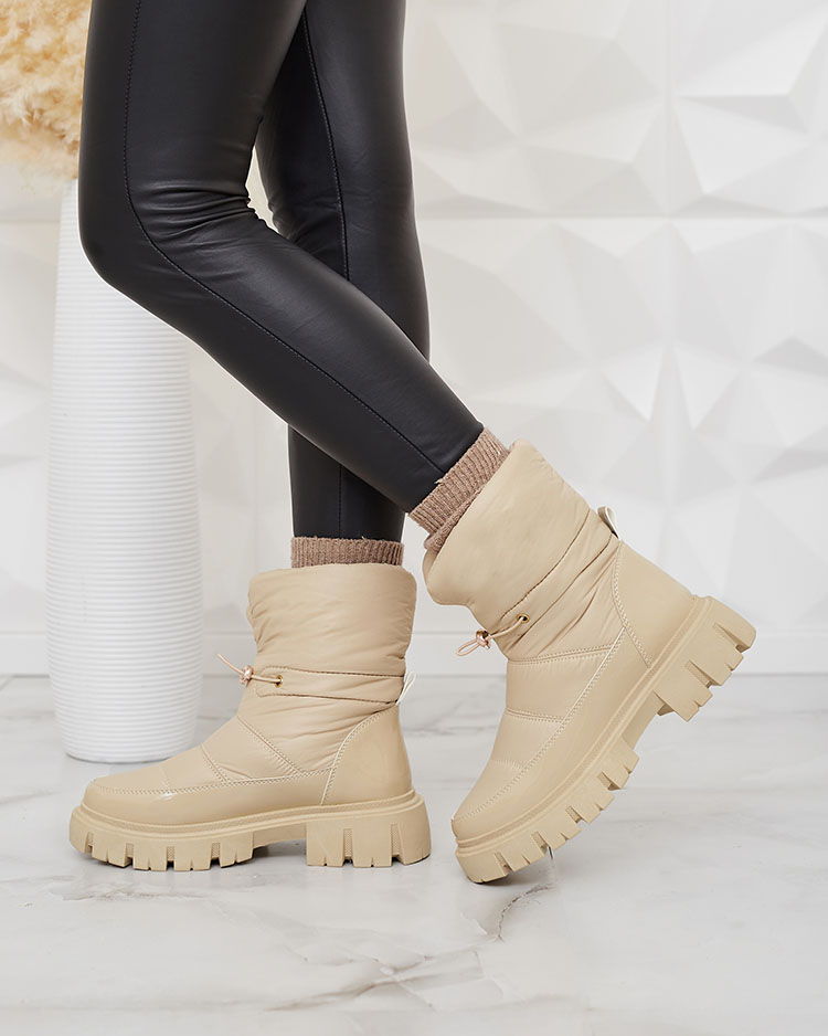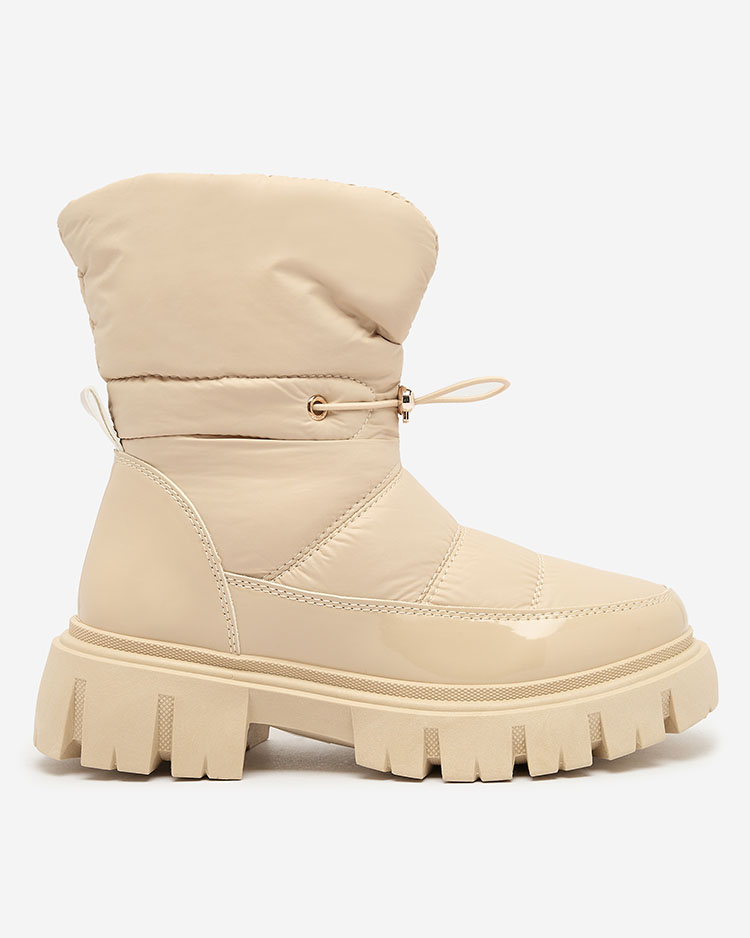- Zeitloser Damen-Schneestiefel. Das Obermaterial ist aus a'la cerata Material und Einsätzen aus lackiertem Öko-Leder gefertigt. Innen isoliert in Form von Pelz, die Schuhe haben einen Rahmen. Ideal für die kältere Jahreszeit!