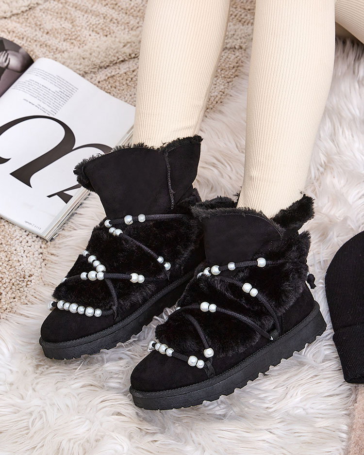 - Warmer Damen Winterschneestiefel mit flachem Absatz. Der mit Perlen verzierte Schaft zum Schnüren ist aus einer Kombination von Öko-Nubuk und Pelz gefertigt. Die perfekte Basis für den Winter!