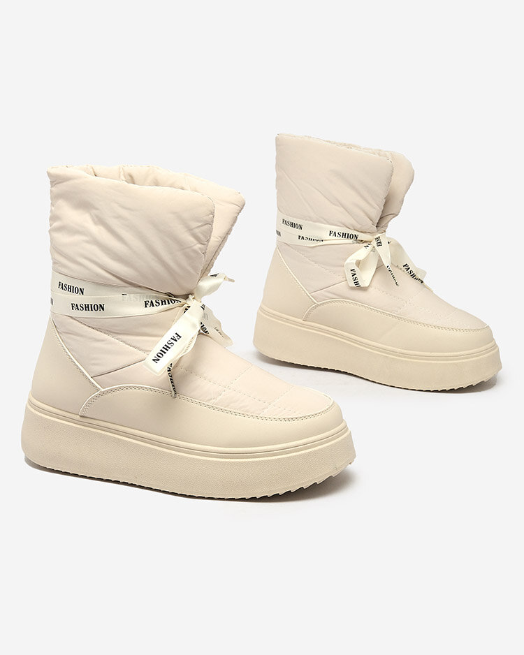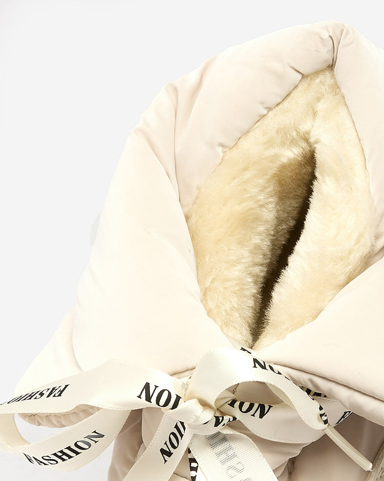 - Sensationeller Damen Schneestiefel. Das Obermaterial ist aus Material a'la cerata und Einsätzen aus ökologischem Leder gefertigt. Innen wärmend in Form von Pelz, Schuhe zum Hineinschlüpfen und haben ein Band. Perfekt für die kältere Jahreszeit!