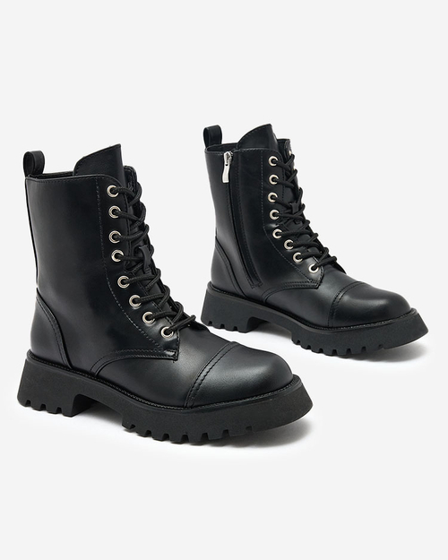 • Stylische Baggerstiefel aus Ökoleder. Die Schuhe sind geschnürt und mit Reißverschluss versehen, haben eine dickere Gummisohle und eine Fellisolierung. Perfekt für den Herbst!