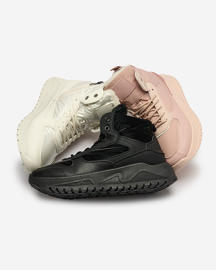 - Sportliche Damensneaker mit einer dickeren Sohle. Schnürobermaterial aus einer Kombination aus Eco-Leder und glattem Stoff. Vollständig mit Fell gefüttert. Perfekt für sportliche Outfits!