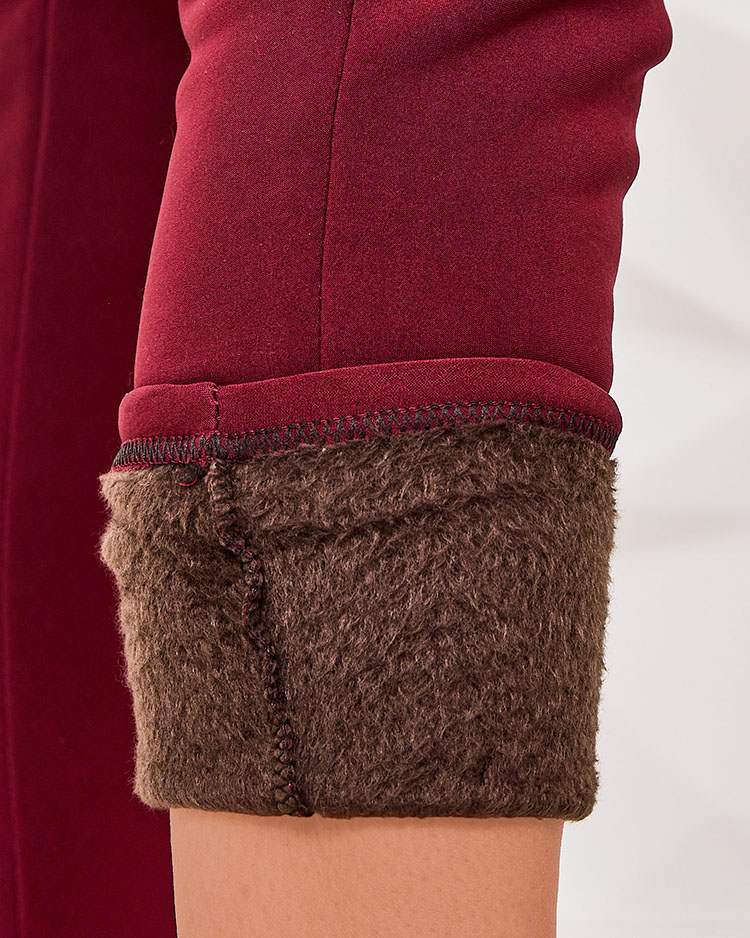 - Stylische Teggings-Hose für Damen aus Stretch-Stoff mit Pelzbesatz. Das Modell hat einen breiten elastischen Bund und 2 Eingrifftaschen auf der Rückseite. Mit Knöpfen verziert. Ein Must-have dieser Saison!