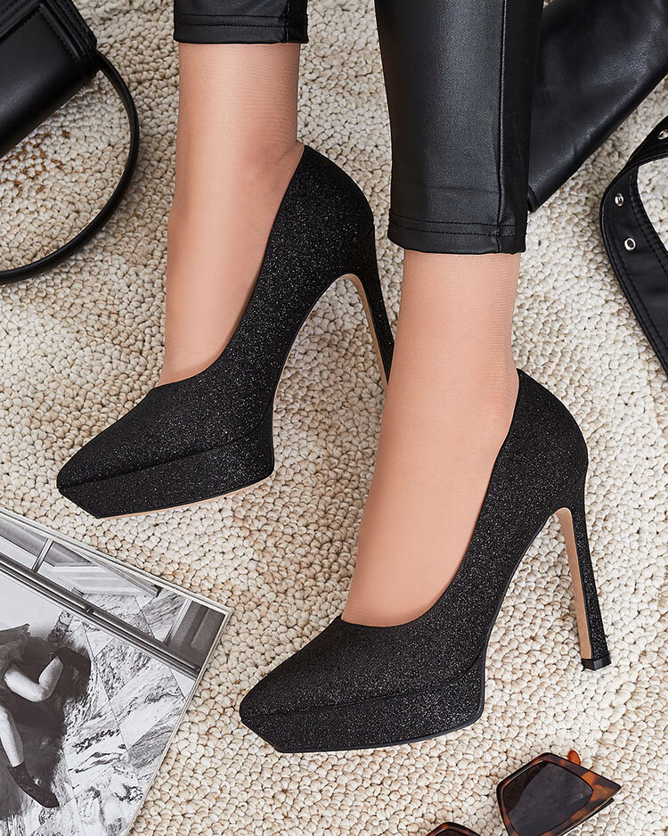 - Sensationelle Damen-Pumps auf einem Pfosten, haben ein Obermaterial aus Öko-Leder mit Glitzer. Die Innensohle ist mit Öko-Leder gefüttert, das Modell auf einem höheren Pfosten mit einer spitzen Nase. Perfekt zu kurzen Kleidern!