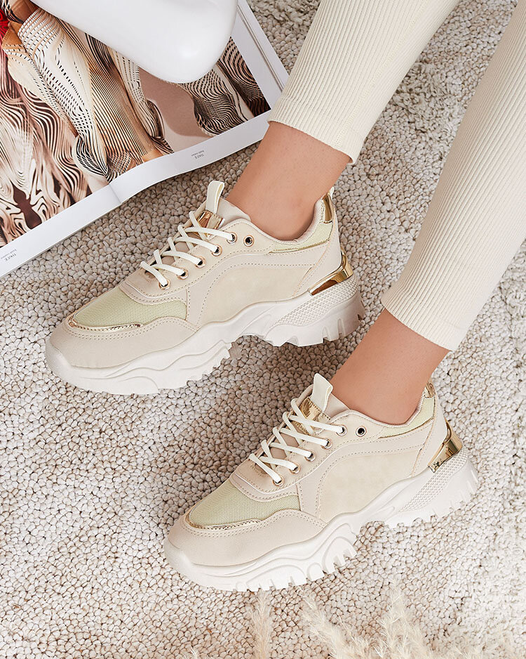 - Damen-Sportschuhe aus Öko-Leder. Innen gibt es eine Innensohle aus Stoff. Das Modell ist geschnürt und hat eine feste Sohle mit einem silbernen Einsatz auf der Rückseite. Sie sind ein tolles Accessoire für das tägliche Styling.