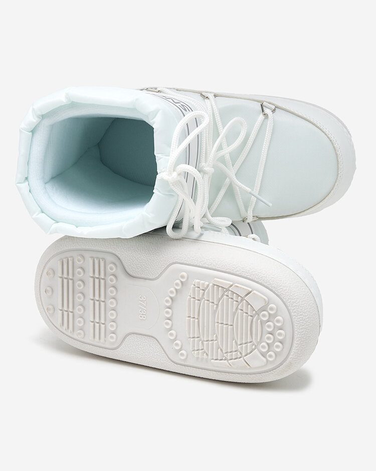 - Damen Schneestiefel mit Bündchen, hergestellt aus einer Kombination von Kunstleder und gestepptem Stoffmaterial. Gefüttert mit Stoff im Inneren, zum Hineinschlüpfen und Binden, mit Bündchen.