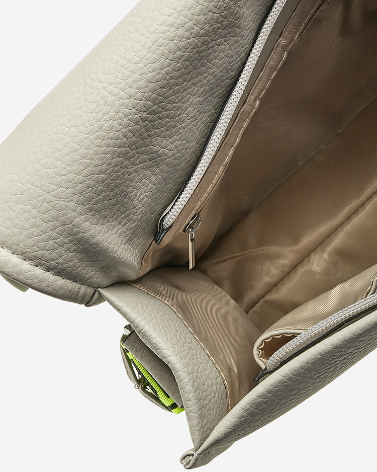 - Einzigartige kleine Damenhandtasche aus Ökoleder mit neongelbem, verstellbarem Riemen. Das Modell hat 4 Fächer. Eine Kombination aus Eleganz und sportlichem Stil!