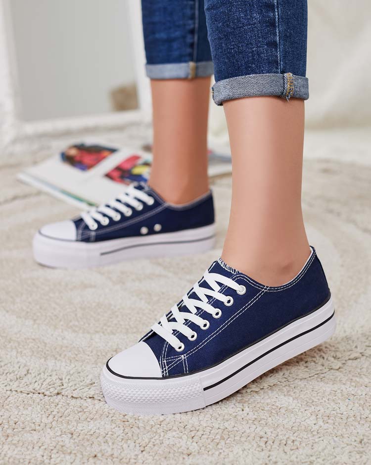 - Stylische Damen Turnschuhe aus Stoffmaterial. Das Modell auf einem bequemen Plateau. Der Schaft ist geschnürt. Ideal für die Gestaltung von lässigen Outfits!