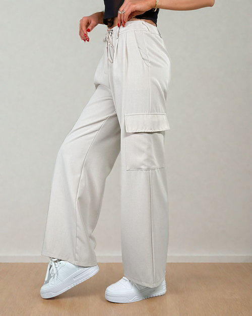 - Phänomenale weite Hose aus leichtem Stoff, das Modell hat ein elastisches Band und Hosen an der Taille. Außerdem hat es zwei Taschen an den Seiten. Ein Hit in dieser Saison! HINWEIS: Messgenauigkeit (+/-) 1 cm.