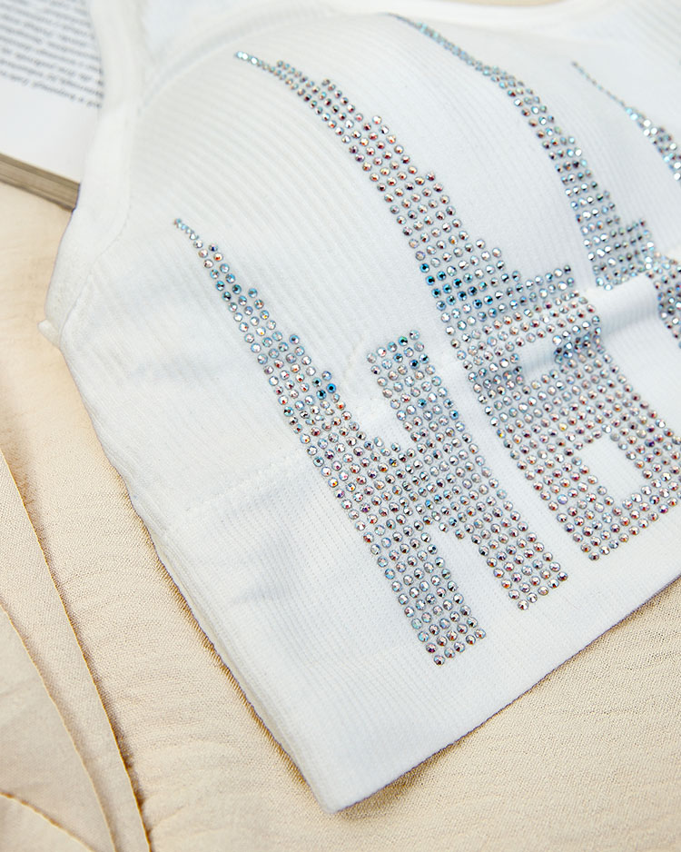- Damen Sport-BH aus elastischem, angenehmem Material. Modell mit nicht verstellbaren, gekreuzten Trägern, ohne Verschluss und mit herausnehmbaren Einsätzen, unten mit breitem Gummizug abgeschlossen und mit Zirkonen verziert. Es passt sich perfekt dem Körpe