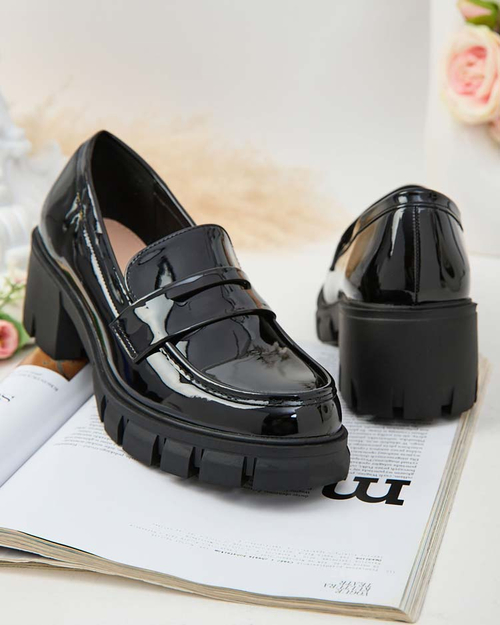 - Schöne Damen Mokassins auf einem niedrigen Pfosten. Modell in einem lässigen Stil und ist aus Lackleder und Öko-Leder-Einlegesohle gemacht. Abgerundete Nase. Perfekte Basis für viele Alltagslooks!