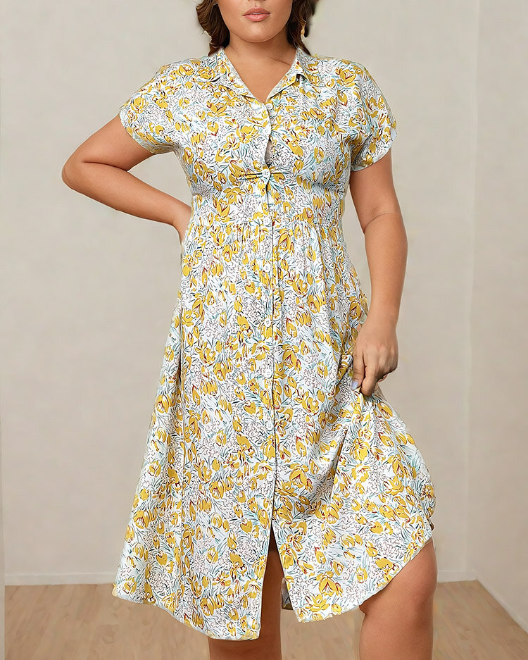 Royalfashion Damen Midikleid mit Blumenmuster