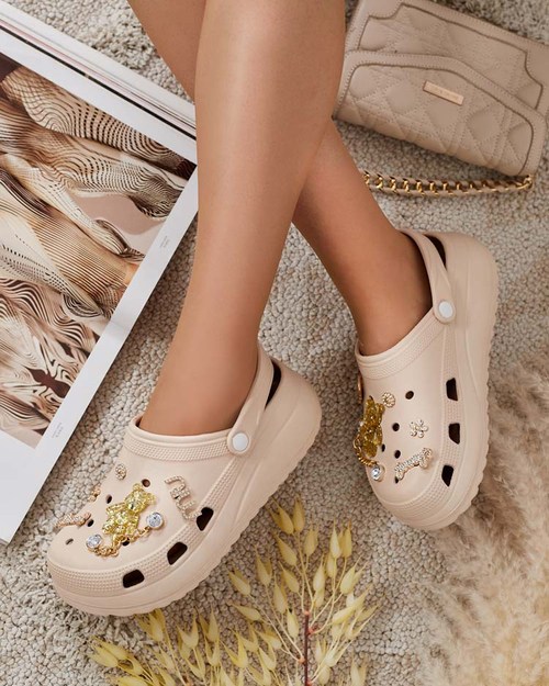 - Tolle durchbrochene Damen-Gummi-Flip-Flops mit flacher Sohle. Sie haben abnehmbare, zirkonische Verzierungen auf dem Schaft. Eine perfekte Wahl für die Ferien!