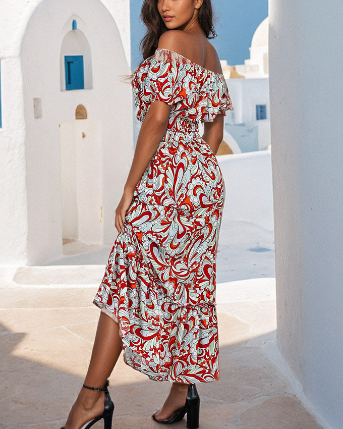 • Gemustertes Sommer-Damenset aus angenehmem, leichtem Stoff. Das kurze Oberteil im spanischen Stil hat einen Rundhalsausschnitt und einen elastischen Bund. Der lange Rock hat einen elastischen Bund und Zierrüschen. HINWEIS: Messgenauigkeit (+/-) 1 cm.