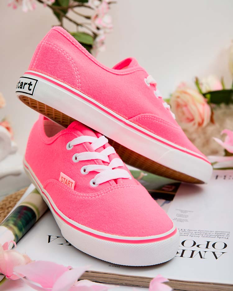 - Leichte Damen-Sportschuhe im Stil von Sneakers auf flacher Sohle. Obermaterial mit Schnürung aus Stoff. Innensohle aus Textilmaterial. Ideal für Sommerspaziergänge!