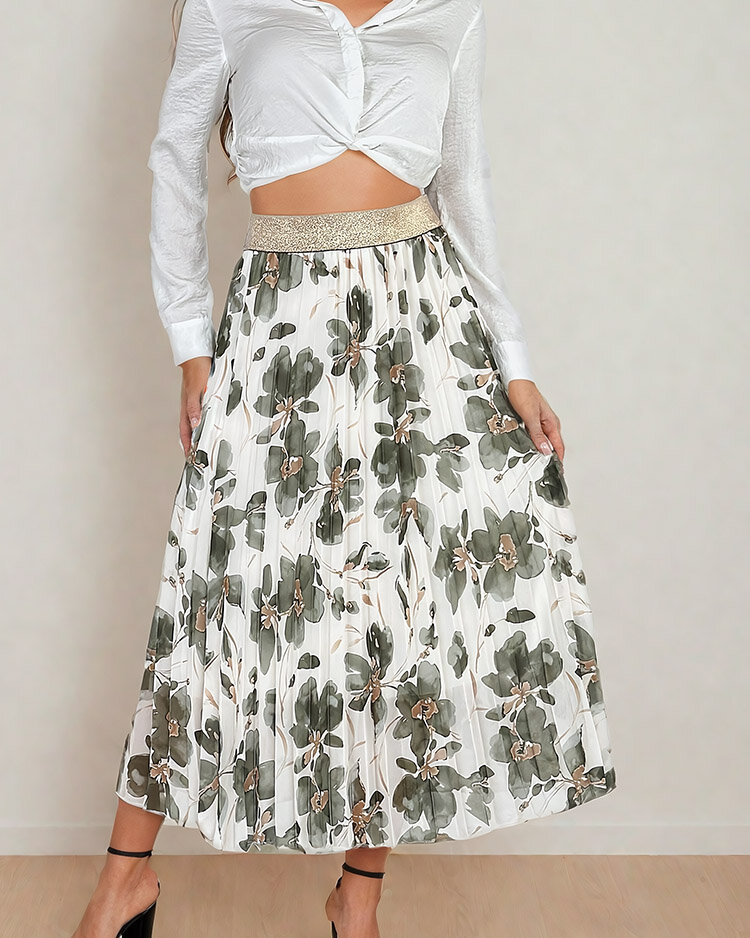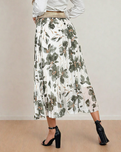 - Damen Faltenrock in Midi-Länge. Das Modell hat einen elastischen Bund, der die Taille perfekt betont. Außerdem ist es mit einem floralen Muster verziert. Dieser Rock ist ein toller Akzent für Ihren Alltagslook!