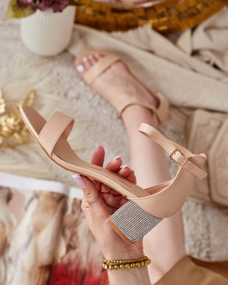 - Stiletto-Sandalen aus Öko-Leder und Öko-Leder-Innensohle, die mit einer Schnalle geschlossen werden. Die Pumps befinden sich auf einem bequemen, mit Zirkonia verzierten Pfosten, was den Tragekomfort deutlich erhöht, und die Schnalle erleichtert das Anzieh