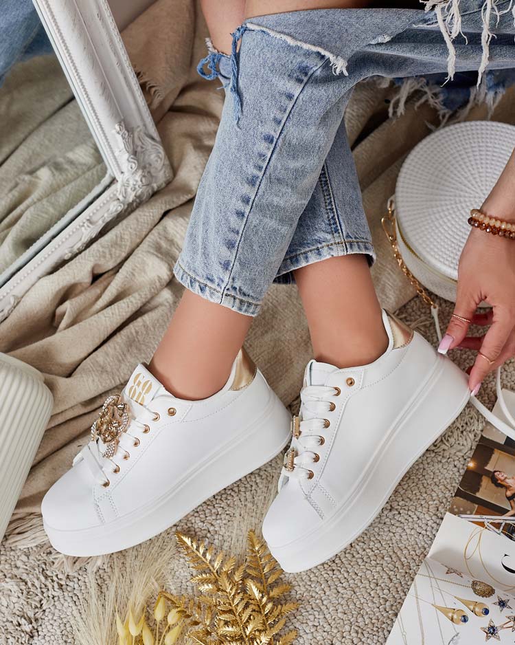 - Damen-Sneaker aus Eco-Leder mit dickerer Sohle - die perfekte Kombination aus Stil und Komfort. Modell mit Schnürung und eleganten Verzierungen. Perfekt für alltägliche Outfits!