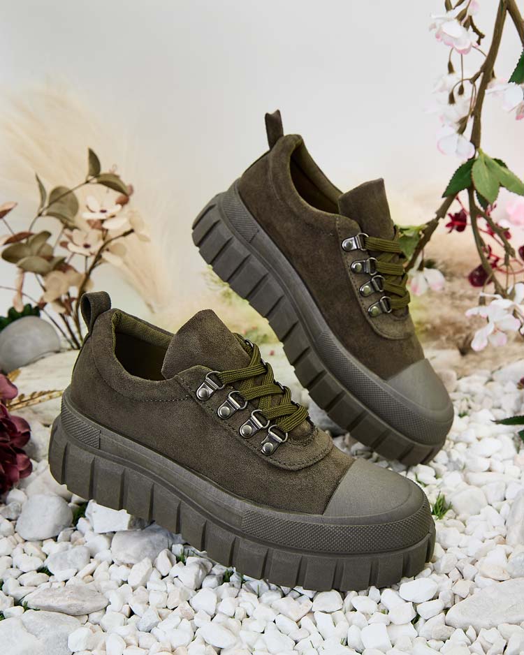 - Stilvolle Damen Sportschuhe aus ökologischem Wildleder und Stoffsohle. Das Modell hat eine bequeme Sohle. Ideal, um lässige Outfits zu kreieren!
