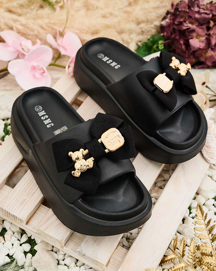 • Tolle Plateau-Gummi-Flip-Flops für Damen. Sie haben eine dekorative Schleife auf dem Schaft. Eine perfekte Wahl für die Ferien!