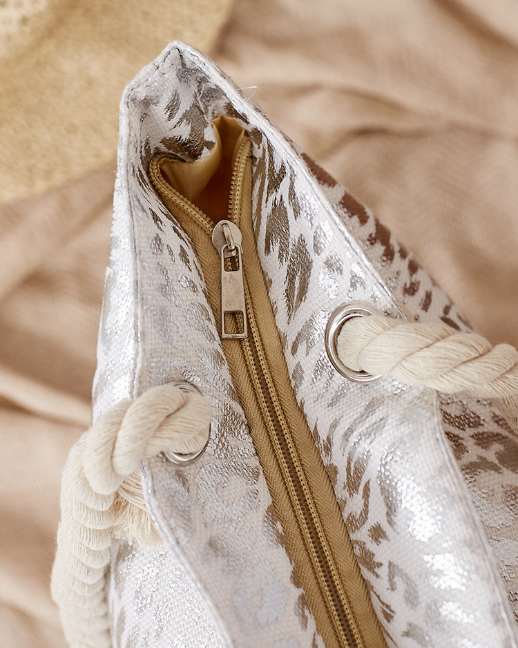 - Große Damentasche für den Strand, aus Stoff mit Leopardenmuster. Das Modell hat 1 Fach und ist mit einem Reißverschluss versehen. Perfekt für jeden Tag oder für den Strand!