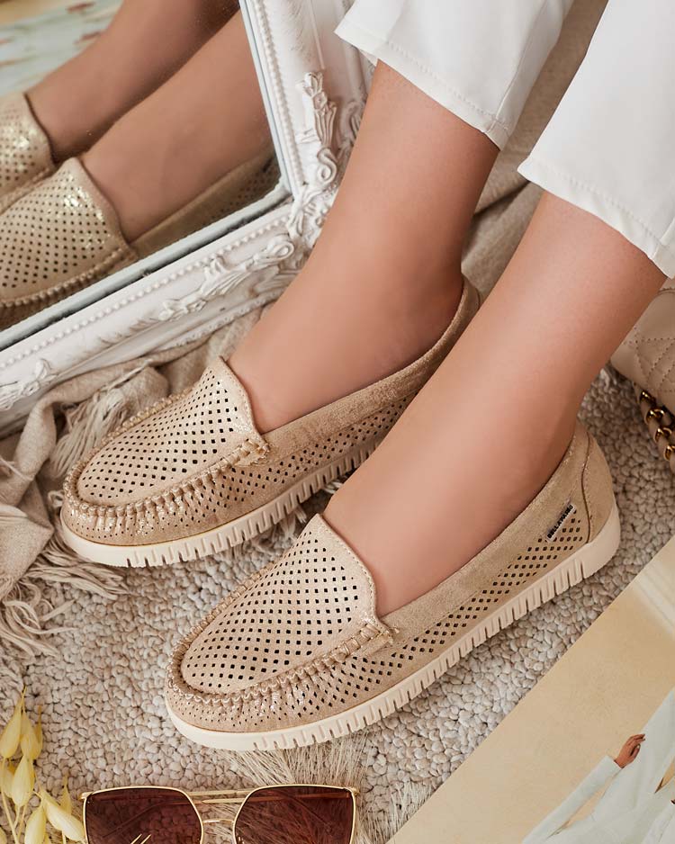 - Damen Ledermokassins auf einer flachen Sohle. Das Modell ist aus ökologischem Leder hergestellt. Die Innensohle ist aus Naturleder. Perfekte Basis für jeden Tag!