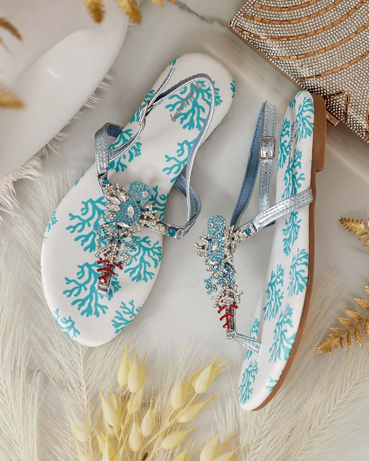 - Modische flache Damen Flip Flop Sandalen, ganz aus Öko-Leder. Sie werden mit einer Schnalle mit dezentem Schnallenschmuck geschlossen. Perfekt für Sommerspaziergänge und besondere Anlässe!