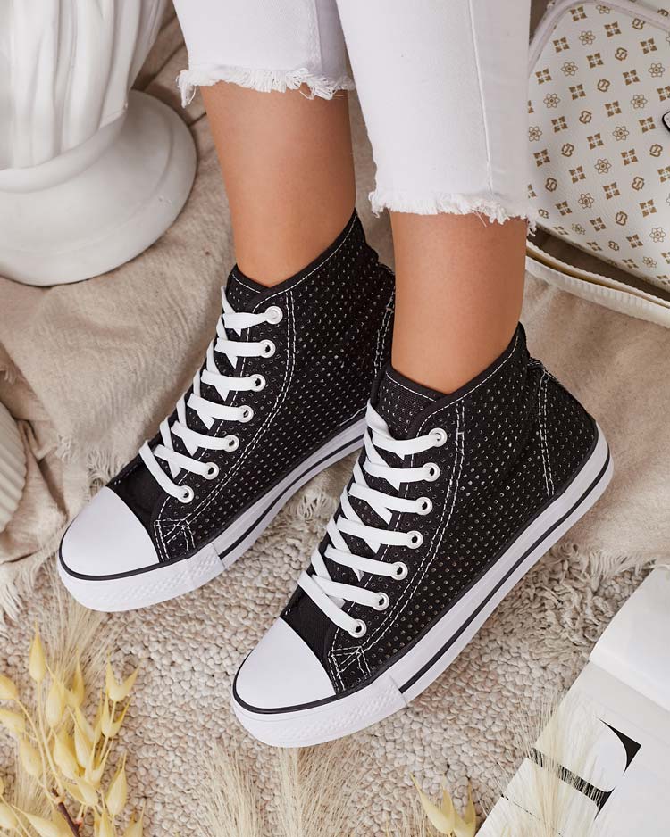 • Damen Schuhe mit flacher Sohle. Das Paar im Casual-Stil ist aus Textilmaterial mit durchbrochener Oberfläche und einer Innensohle aus Textil gefertigt. Perfekt für alle, die Komfort zu schätzen wissen!