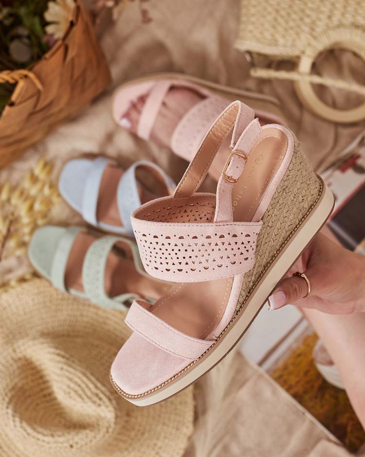 - Durchbrochene Plateau- und Plateausandalen für Damen, geflochten mit dekorativer Jutekordel. Schuhe aus Öko-Wildleder, Innensohlen aus Öko-Leder und mit einer Schnalle zu schließen. Perfekt, um modische Sommeroutfits zu kreieren!