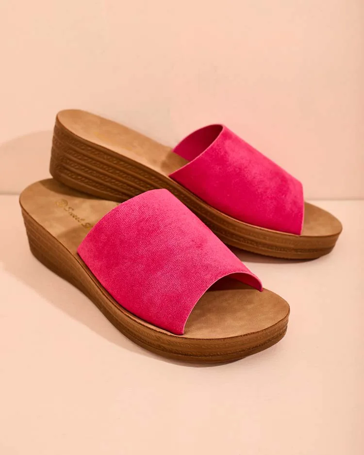 - Damen-Flip-flops aus Öko-Wildleder und Öko-Leder-Innensohle. Der niedrige Absatz und das Plateau verleihen Charme und Charakter. Genießen Sie Komfort und Stil, indem Sie diese Schuhe mit in den Urlaub nehmen!
