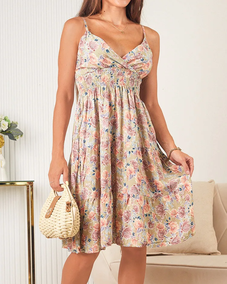 - Knielanges Damenkleid mit Trägern und V-Ausschnitt. Das Modell hat ein dekoratives florales Muster und einen Gummizug in der Rückenbreite. Ein Muss in dieser Saison! HINWEIS: Messgenauigkeit (+/-) 1 cm. Maße flach gemessen.