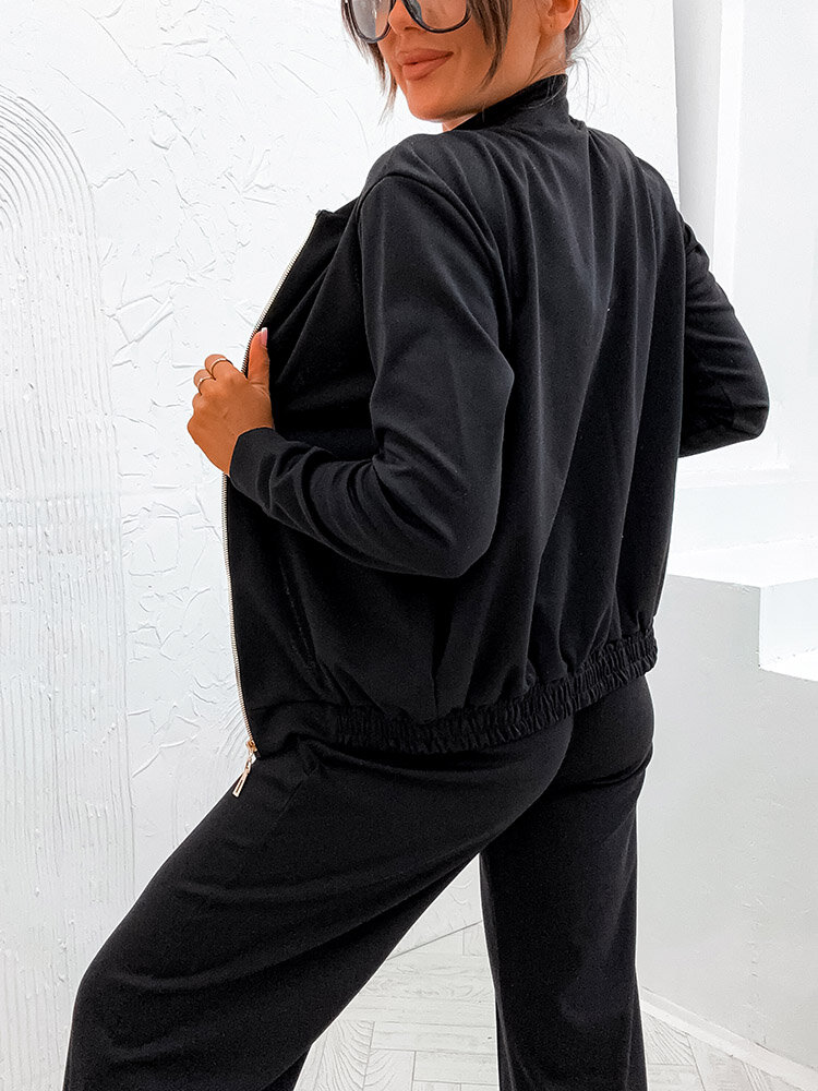 - Originelles Damen-Set aus angenehmem Stoffmaterial. Sweatshirt mit langen Ärmeln ohne Kapuze, mit Reißverschluss. Weite Hose mit elastischem Bund und 2 Taschen. Eleganz und Stil in einem!