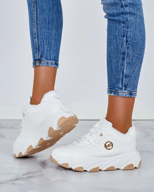 • Damen isolierte Sneaker Sportschuhe auf einer dickeren Sohle. Obermaterial zum Schnüren aus Bio-Wildleder. Innen weiches Fell. Super Ergänzung zu Ihren winterlichen Freizeitoutfits!