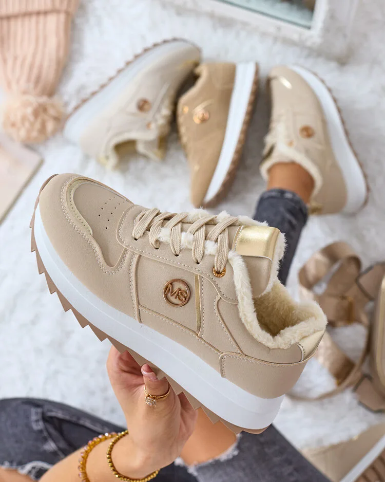 - Sportliche Damen-Sneaker mit dickerer Sohle. Schaft zum Schnüren, aus ökologischem Leder. Innen vollständig mit Fell isoliert. Ideal für kältere Tage!