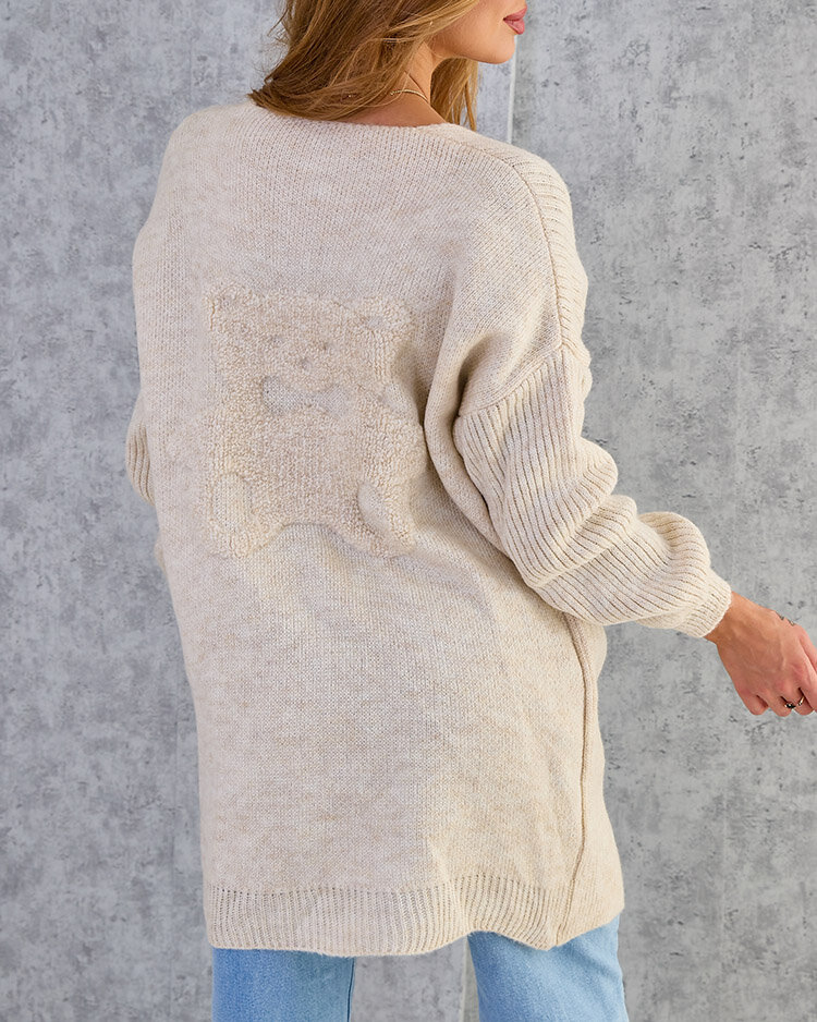 - Schöner Damen-Bettdecken-Pullover, aus angenehmem Strickmaterial. Auf der Rückseite befindet sich ein dekorativer Teddybär. Ein Muss für Ihren Kleiderschrank, um Ihr Herbststyling zu ergänzen! HINWEIS: Messgenauigkeit (+/-) 1 cm.