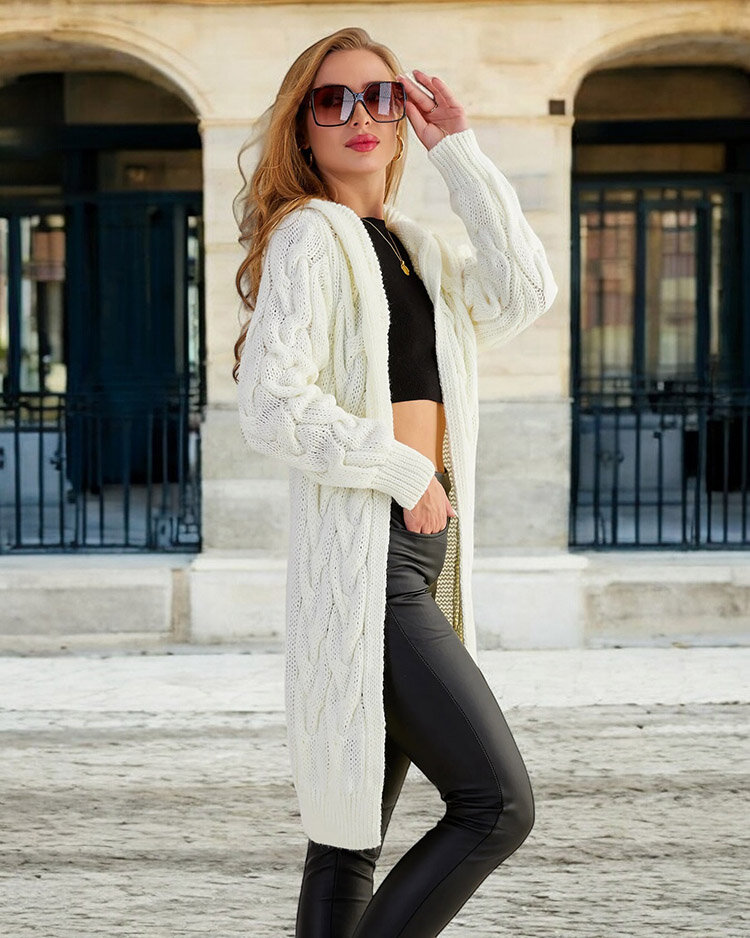 - Schöner Damen Strickpulli aus angenehmem Strickmaterial. Die Strickjacke ist ungeknöpft und hat eine Kapuze. Ein Muss in Ihrem Kleiderschrank, um Ihr Herbststyling zu ergänzen! HINWEIS: Messgenauigkeit (+/-) 1 cm.