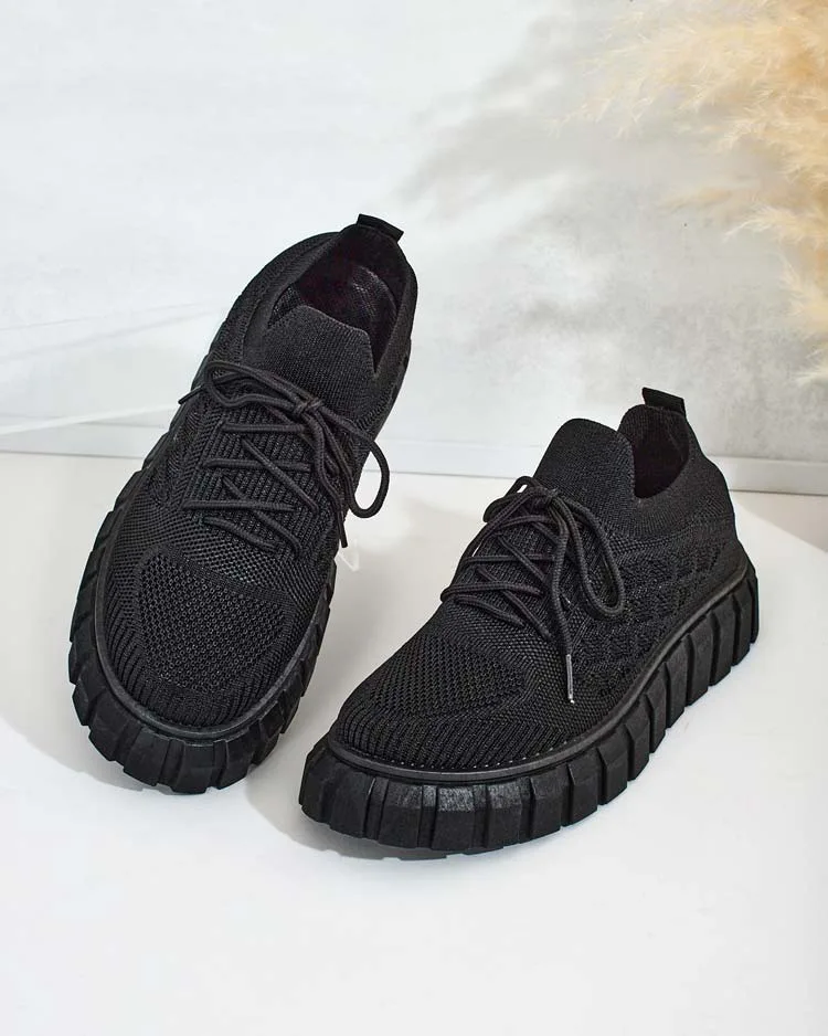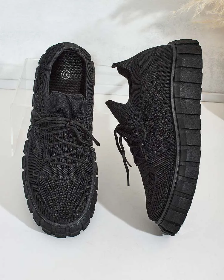 - Damen Sportschuhe auf einem kleinen Plateau. Schaft zum Schnüren, aus Stoff. Solide verarbeitet und sehr bequem dank der weichen Gummisohle.