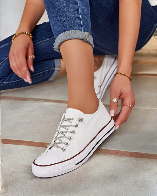 - Damen Sneaker aus Stoffmaterial. Obermaterial mit dekorativen Schnürsenkeln. Klassische Gummisohle. Diese Schuhe sind ideal für jeden Tag!