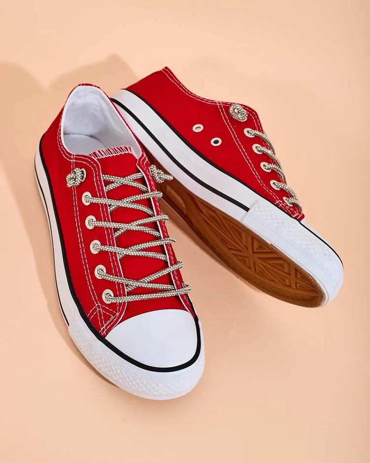 - Damen Sneaker aus Stoffmaterial. Obermaterial mit dekorativen Schnürsenkeln. Klassische Gummisohle. Diese Schuhe sind ideal für jeden Tag!
