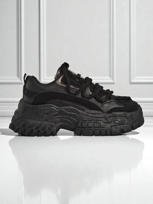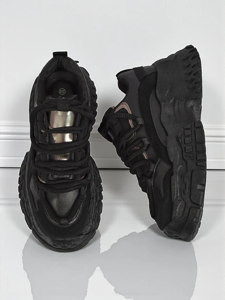 Aurelia Nero – Damen Chunky Sneakers aus ökologischem Leder Schwarz 6,5 cm