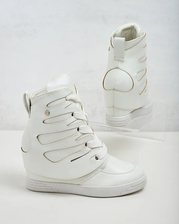 - Sportliche Damenstiefel mit Absatz, aus Ökoleder. Schuhe mit Schnürsenkeln gebunden, Innensohle aus Stoff. SCHUHE STIEFEL TURNSCHUHE PAMSTINSA