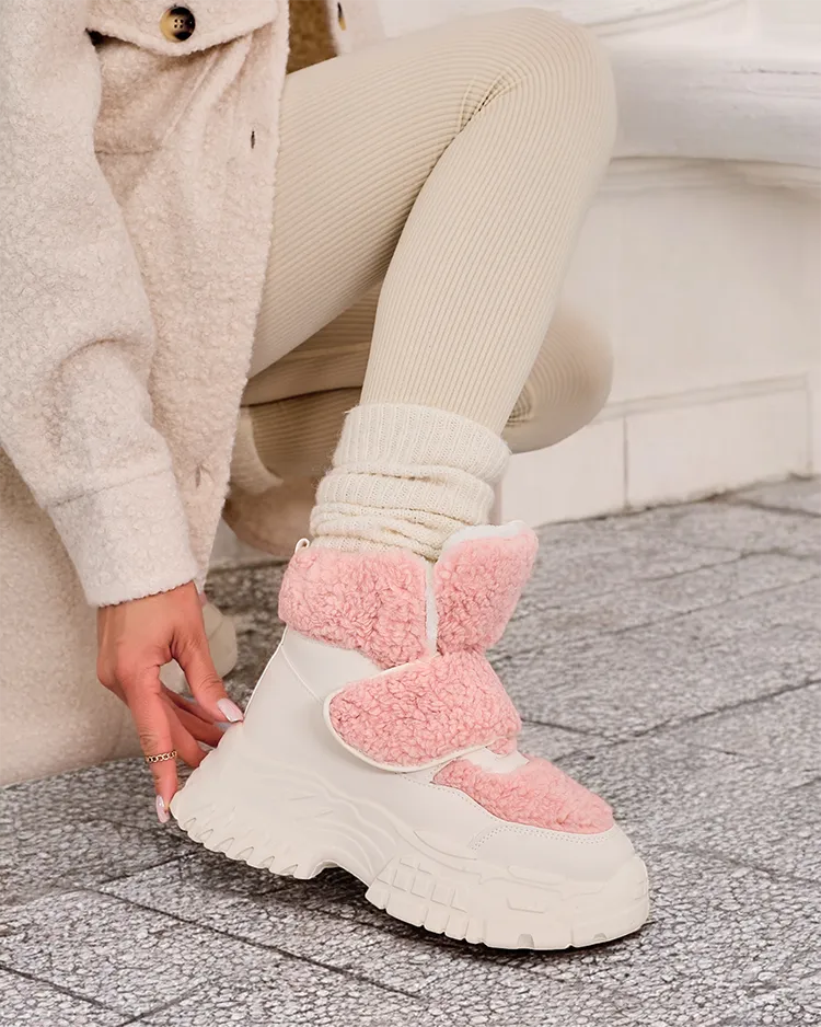 - Zeitlose Damen Schneestiefel. Das Obermaterial ist aus ökologischem Leder mit Einsätzen a'la Schafsfell. Isolierung in Form von Fell innen, die Schuhe haben einen Klettverschluss. Ideal für die kältere Jahreszeit!