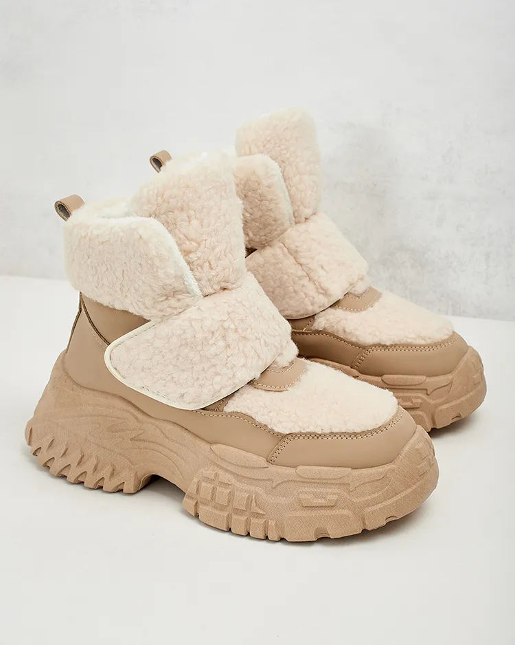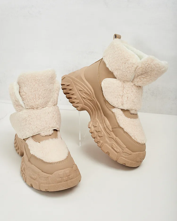- Zeitlose Damen Schneestiefel. Das Obermaterial ist aus ökologischem Leder mit Einsätzen a'la Schafsfell. Isolierung in Form von Fell innen, die Schuhe haben einen Klettverschluss. Ideal für die kältere Jahreszeit!