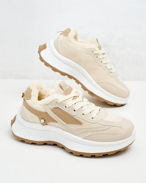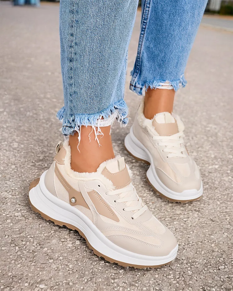 - Damen isolierte Sneaker Sportschuhe auf einer dickeren Sohle. Obermaterial zum Schnüren aus ökologischem Wildleder mit Elementen aus Ökoleder. Innen weiches Fell. Super Ergänzung zu Ihren winterlichen Freizeitoutfits!