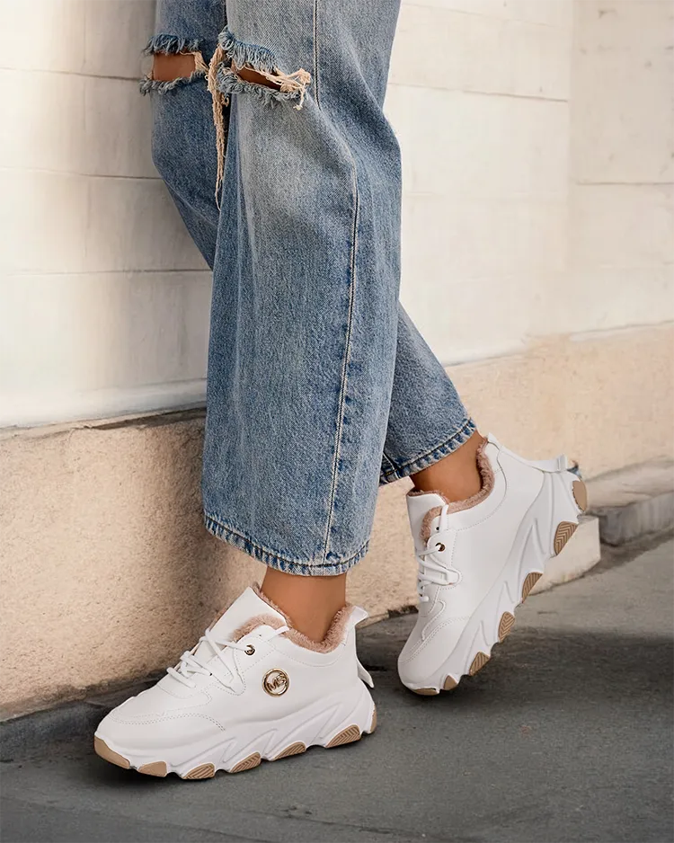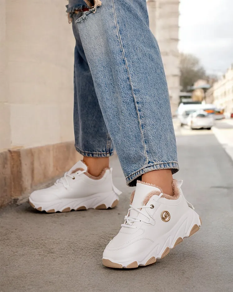 • Damen isolierte Turnschuhe Sportschuhe mit dickerer Sohle. Schaft zum Schnüren aus ökologischem Leder. Innen weiches Fell. Super Ergänzung zu Ihren winterlichen Freizeitoutfits!