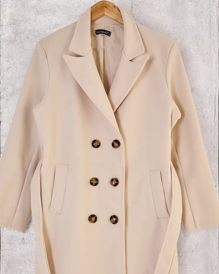- Langer Damenmantel aus angenehmem Material. Das Modell hat lange Ärmel, Knopfverschluss und dekorative Bindung. Es hat ein Futter. Eine ideale Wahl für den Herbst! HINWEIS: Messgenauigkeit (+/-) 1 cm. Abmessungen flach gemessen.