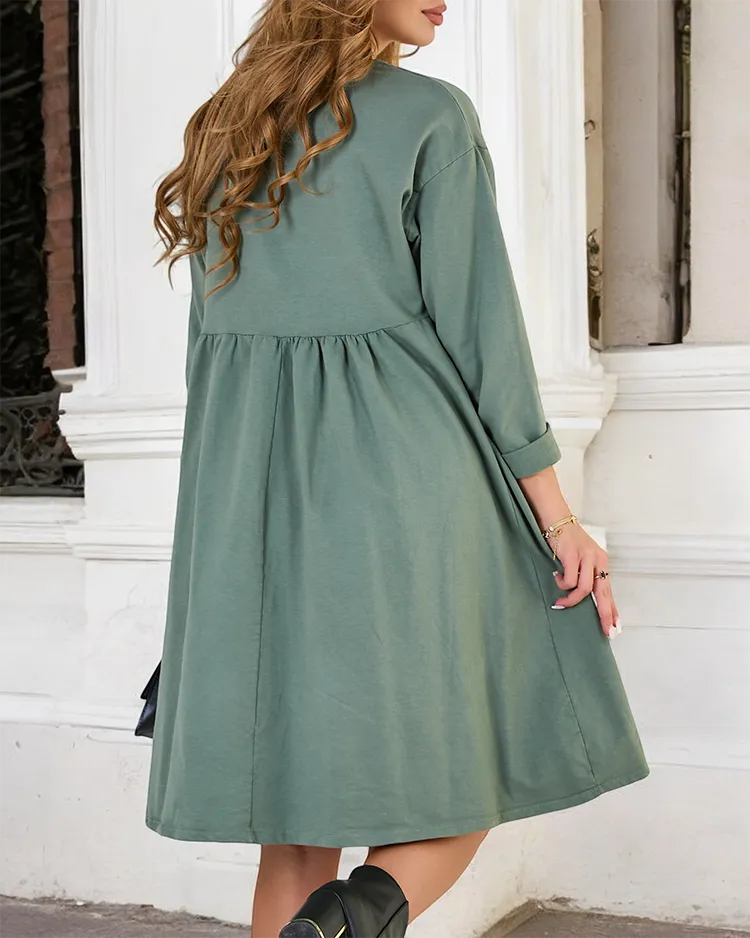 - Lässiges, knielanges Damenkleid mit langen Ärmeln und Rundhalsausschnitt. Modell mit dekorativer Bedruckung. Must have dieser Saison! HINWEIS: Messgenauigkeit (+/-) 1 cm. Abmessungen flach gemessen.