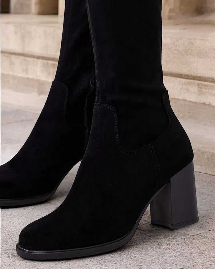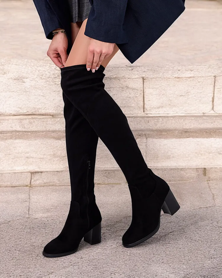 - Stylische Damenstiefel mit Pfosten und Overknee-Schaft. Der Schaft ist aus Bio-Leder und hat eine Innensohle aus Pelz. Das Modell wird mit einem Reißverschluss geschlossen. Perfekt, um elegante Outfits zu kreieren!