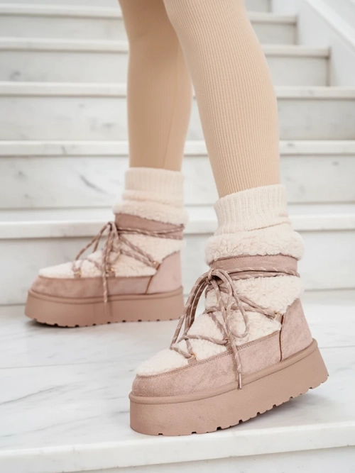 • Damen-Schneestiefel mit einem Obermaterial aus einer Kombination von Öko-Wildleder und Schafsfellmaterial a' la. Innen mit Fell gefüttert, Schlupf- und Schnürschuhe. Perfekt für den Winter!